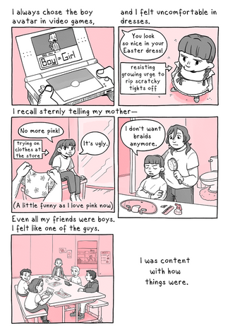 Elijah: A Transgender Biography is my first graphic novel. The book started as a loose collection of stories and situations that have happened over my life, specifically revolving around my growing up as a transgender person. I wanted to include both humorous stories along with the more difficult realities of growing up with parents who weren’t always accepting nor supportive of my identity.